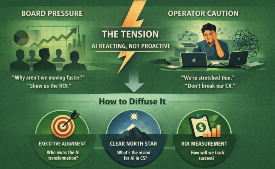AI is transforming every function. Competitors are moving. Investors want to see efficiency gains and a path to scale. The mandate is to re-architect how CS operates and to do it quickly.